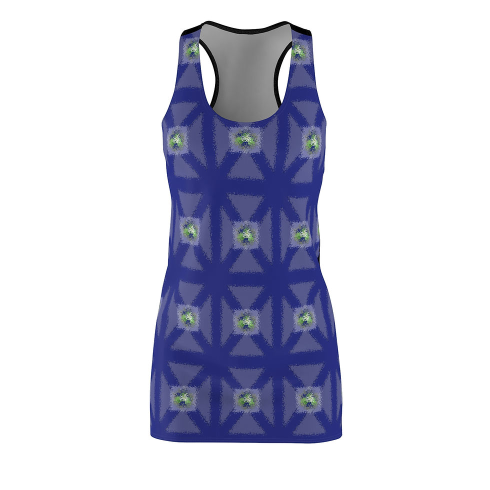 Blue Geometric Racerback Dress Floral X Pattern All-Over Print