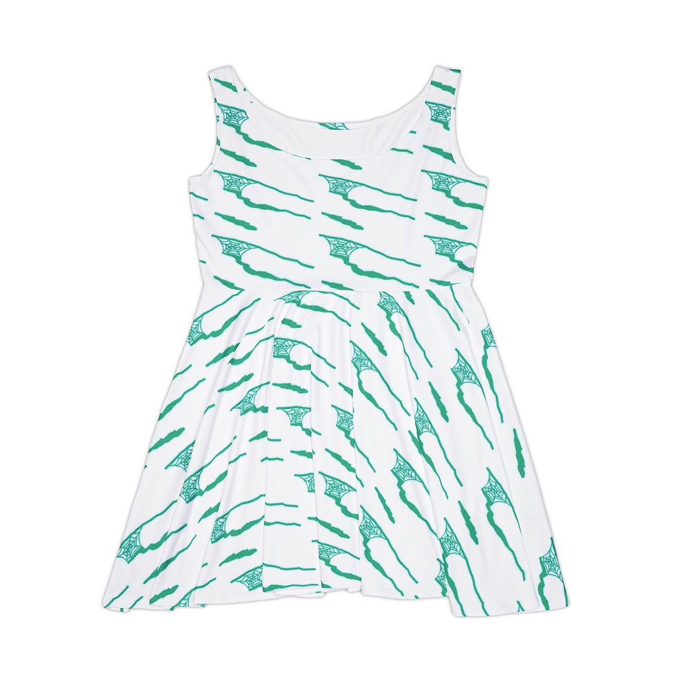 Teal Spider Web Brushstroke Skater Dress All-Over Print Casual Sundress